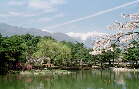 山吹が映る池