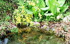 山吹が映る池